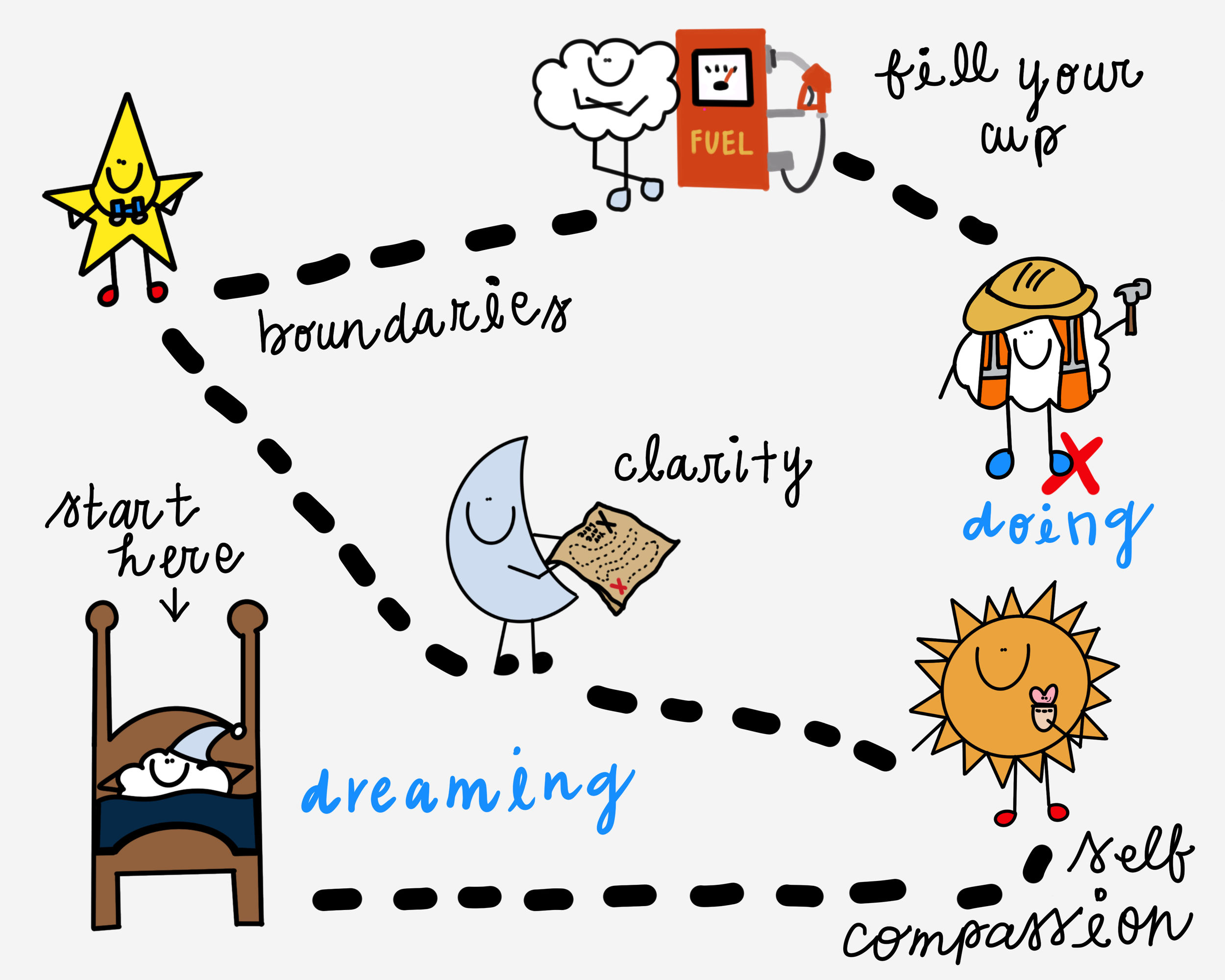 To awaken your sleeping dreams, you need a little self-compassion, clarity, boundaries, and cup filling.